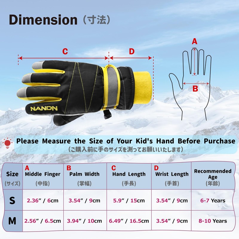 - Size Reference: S (for kids aged 6-7), M (for children aged 8-10). Please measure your child's hand size before purchasing. Let the kids enjoy various winter activities like snowball fights, skiing, building snowmen, and cycling!