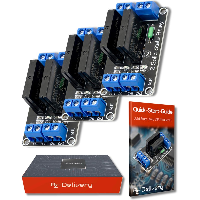 AZDelivery 3 x 2 Channel Relay Module 5V DC Solid State Relay Low Level Trigger Power Switch Relay Board Compatible with Arduino and Raspberry Pi