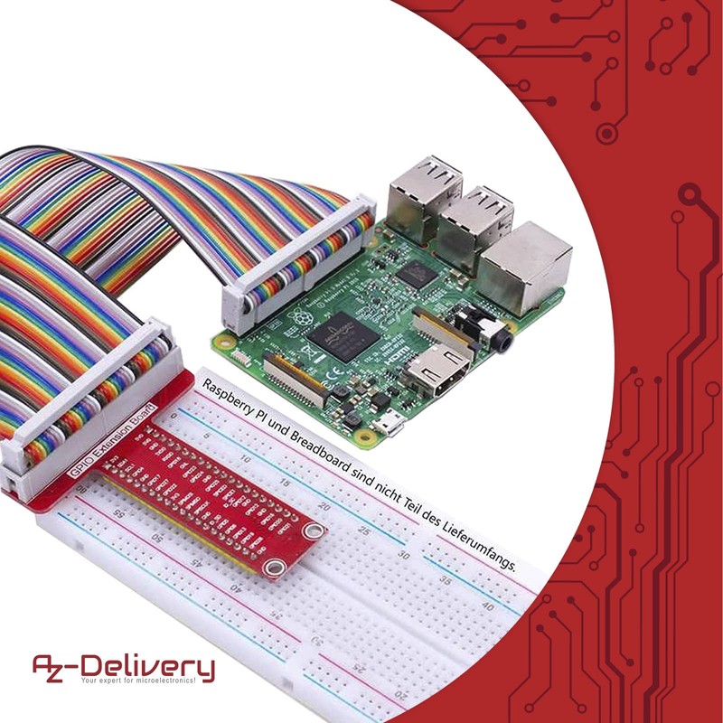 AZDelivery 5 x 40 Pins GPIO Breakout Board and Compatible Ribbon Cable Compatible with Raspberry Pi