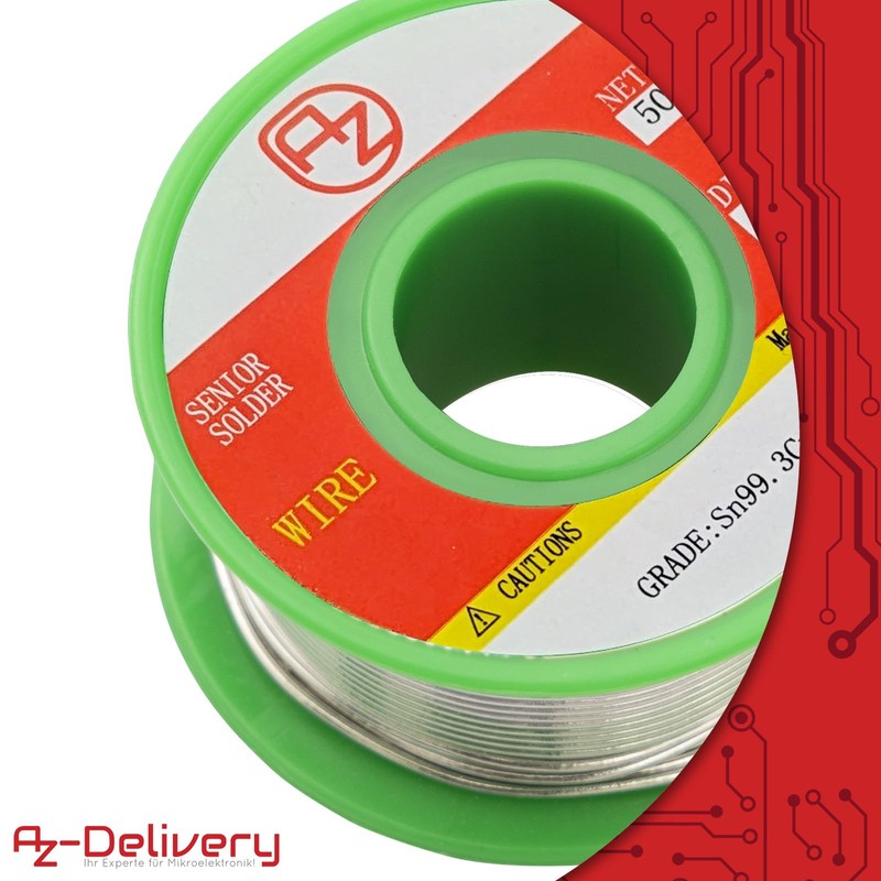 AZDelivery 5 x Soldering Wire, Lead-Free Soldering Flux Sn99.3Cu0.7Cu, Iron Welding Tool for Electric Soldering, Rosin Core Flux, Electric Soldering Components Repair and DIY