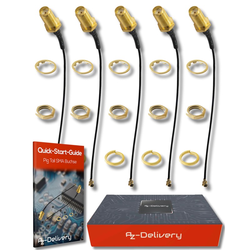 AZDelivery 5x IPEX to SMA Pigtail Coaxial Cable, SMA Connector Cable Female to UFL/u.FL/IPX/IPEX, RF Coax Adapter Pigtail Cable