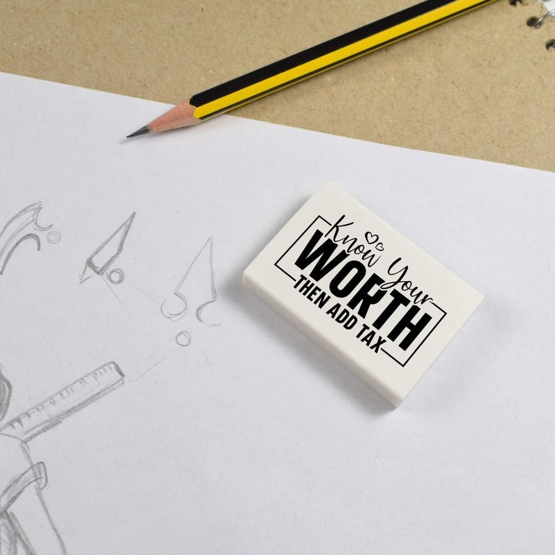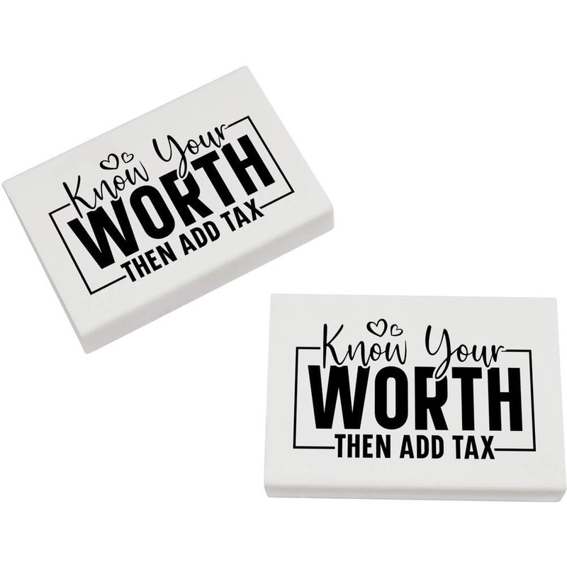 Azeeda 2 x 45mm 'Kennen Sie Ihren Wert, dann fügen Sie Steuern hinzu. Lustiger Text ' Radiergummis (ER00047043)