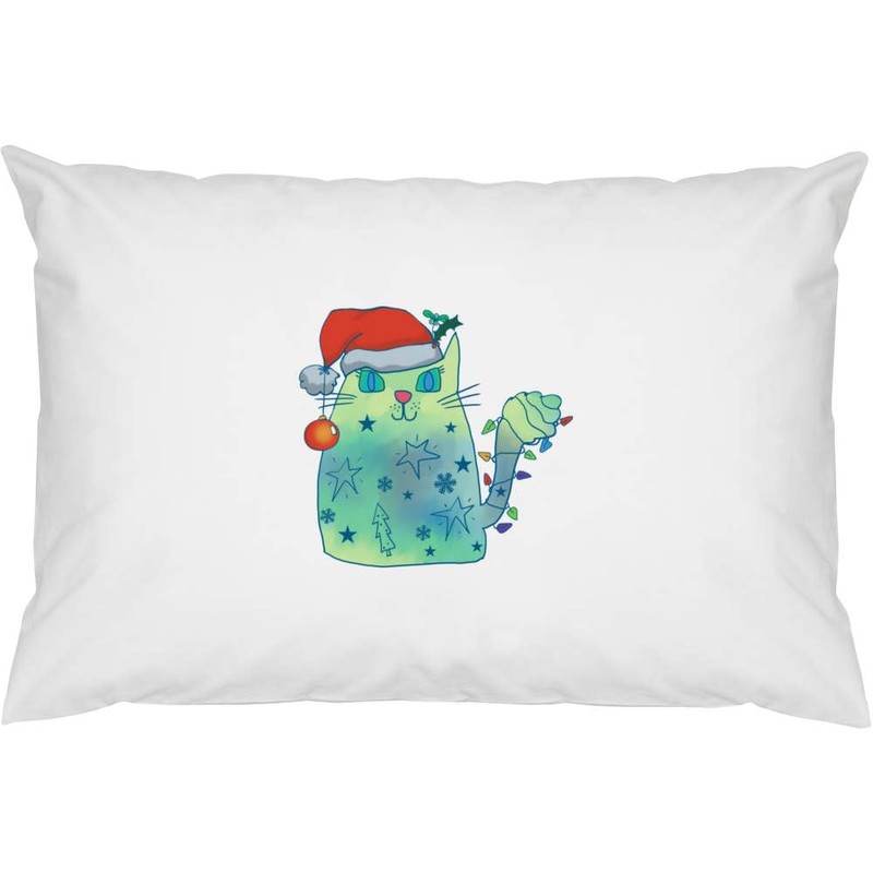 Azeeda 2 x 'Whimsical Cat At Christmas' Cotton Pillow Cases (PW00042090)