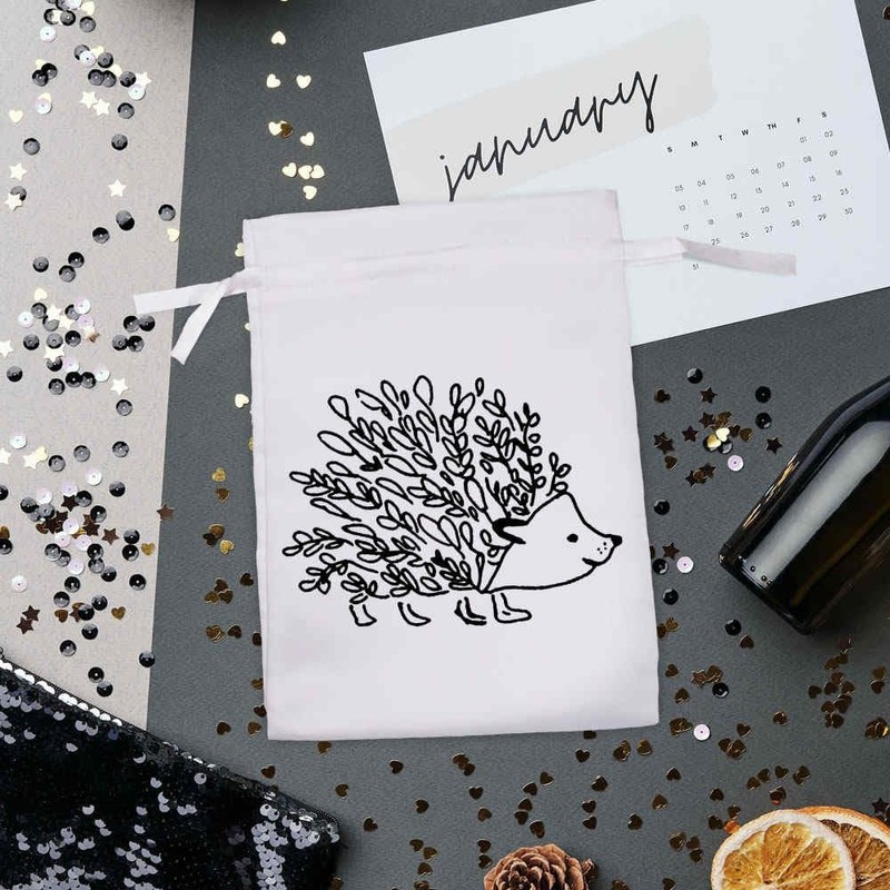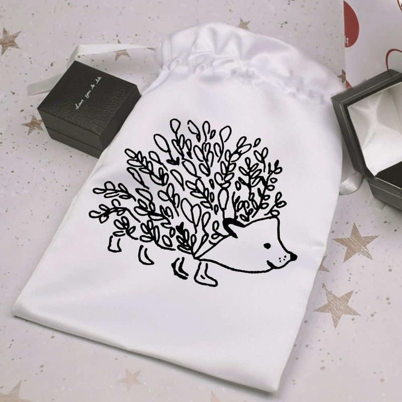 Azeeda 25cm 'Floral Hedgehog' Satin Drawstring Bag/Pouch (SB00018773)