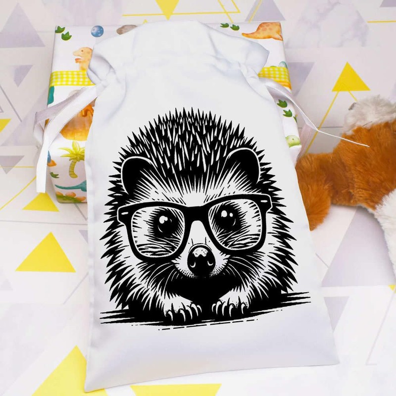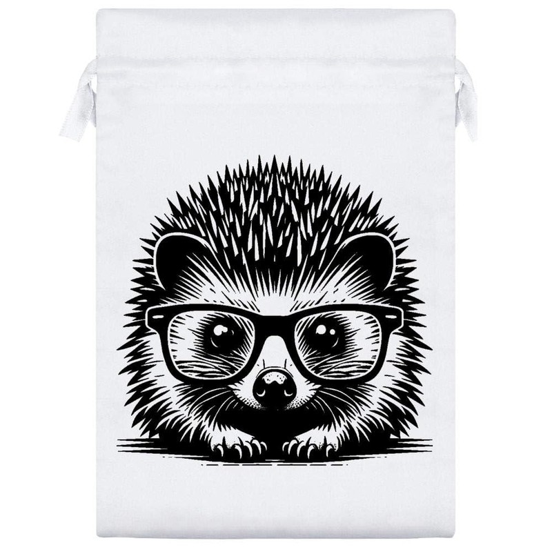 Azeeda 25cm 'Hedgehog Wearing Glasses' Satin Drawstring Bag/Pouch (SB00098744)