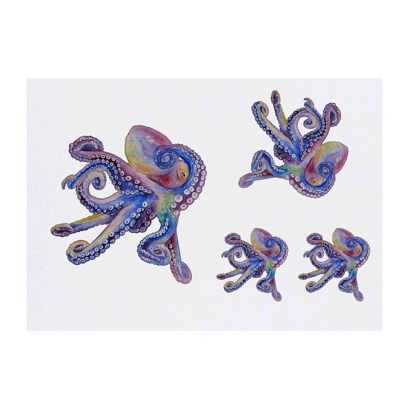 Azeeda 4 x 'Bunte Krake' Temporäre Tattoos - Wasserfest, Hautfreundlich & Ungiftig · Transfers in Verschiedenen Größen (TO00036257)