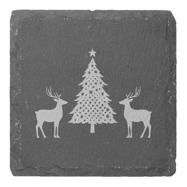 Azeeda 4 x 'Christmas Tree with Two Reindeer Silhouette' 10cm Square Slate Coasters (CR00225558)