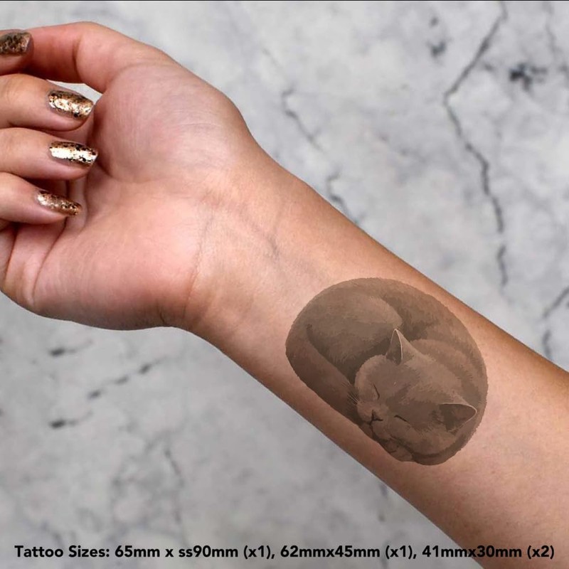 Azeeda 4 x 'Curled Up Sleeping British Shorthair Cat' Temporary Tattoos - Water Resistant, Skin-Safe, Non-Toxic Transfers, Mixed Sizes (TO00090830)