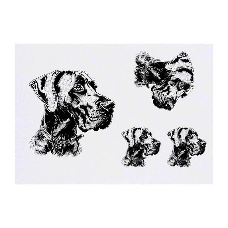 Azeeda 4 x 'Deutsche Dogge, Seitenprofil' Temporäre Tattoos - Wasserfest, Hautfreundlich & Ungiftig · Transfers in Verschiedenen Größen (TO00070790)