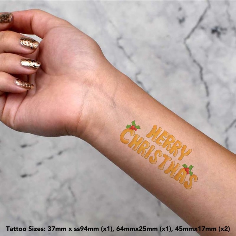 Azeeda 4 x 'Fröhliche Weihnachten' Temporäre Tattoos - Wasserfest, Hautfreundlich & Ungiftig · Transfers in Verschiedenen Größen (TO00078918)