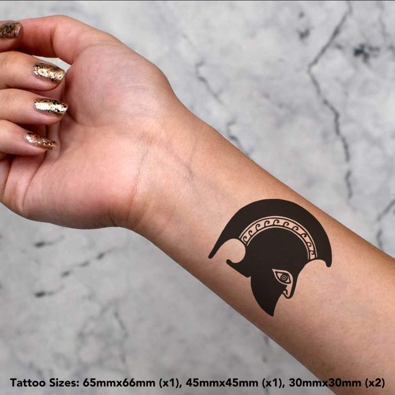 Azeeda 4 x 'Griechischer Helm' Temporäre Tattoos - Wasserfest, Hautfreundlich & Ungiftig · Transfers in Verschiedenen Größen (TO00012459)