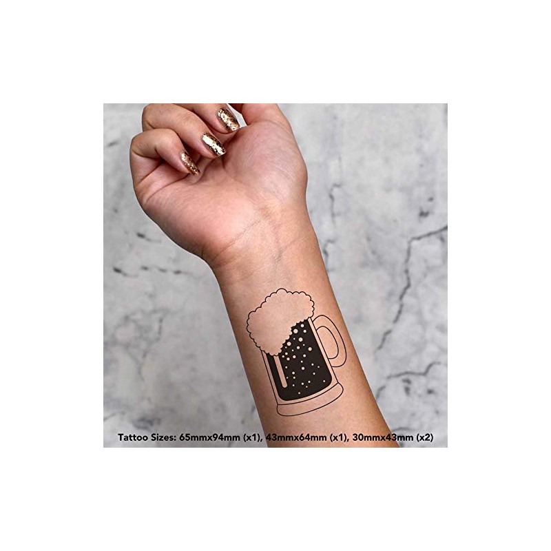 Azeeda 4 x 'Krug Bier' Temporäre Tattoos - Wasserfest, Hautfreundlich & Ungiftig · Transfers in Verschiedenen Größen (TO00039919)
