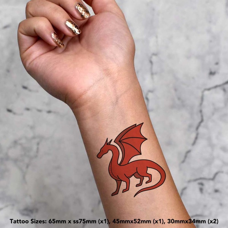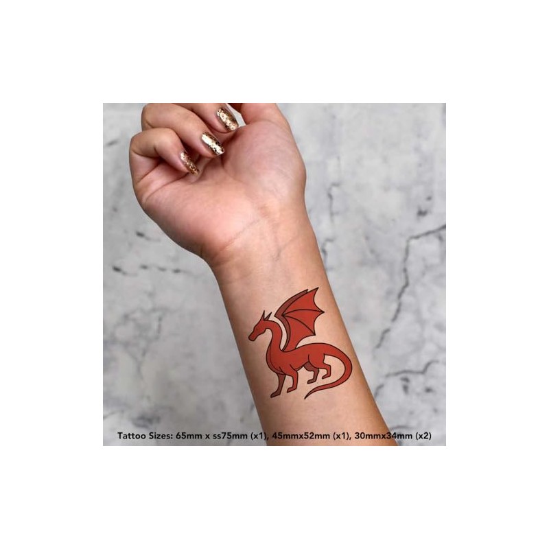 Azeeda 4 x 'Roter Drache' Temporäre Tattoos - Wasserfest, Hautfreundlich & Ungiftig · Transfers in Verschiedenen Größen (TO00084782)