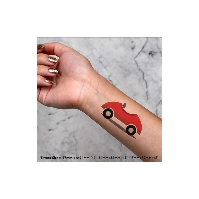 Azeeda 4 x 'Rotes Spielzeugauto' Temporäre Tattoos - Wasserfest, Hautfreundlich & Ungiftig · Transfers in Verschiedenen Größen (TO00082246)