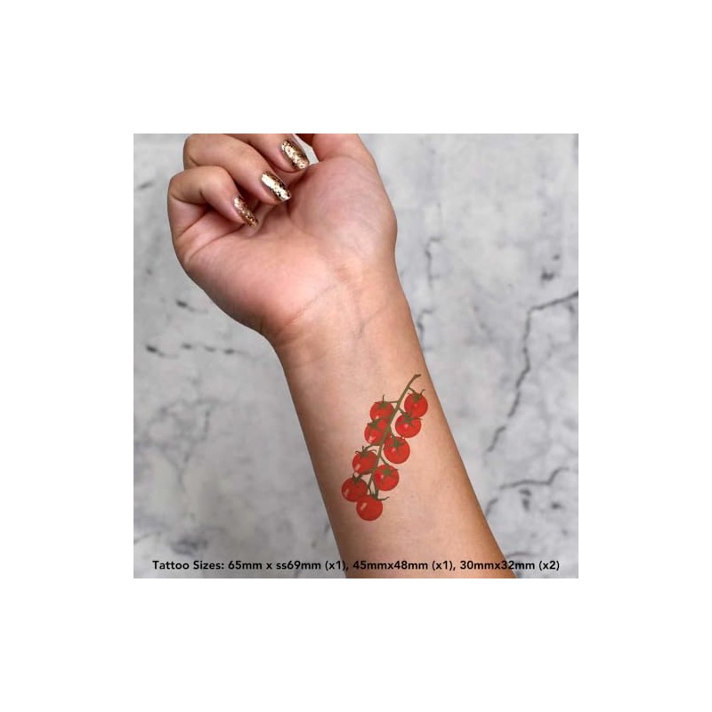 Azeeda 4 x 'Strauchtomaten' Temporäre Tattoos - Wasserfest, Hautfreundlich & Ungiftig · Transfers in Verschiedenen Größen (TO00085218)