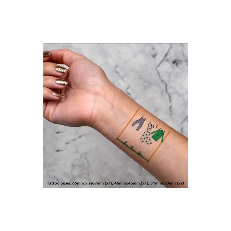 Azeeda 4 x 'Wäscheleine mit Kleidung' Temporäre Tattoos - Wasserfest, Hautfreundlich & Ungiftig · Transfers in Verschiedenen Größen (TO00082308)