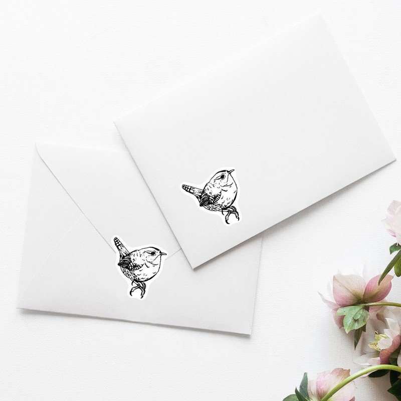 Azeeda 4 x 'Wren Bird' White Premium Vinyl Decal Stickers – Waterproof, Durable & Easy to Apply - Ideal for Car Bumpers, Windows, Bins and More (DW00024873)