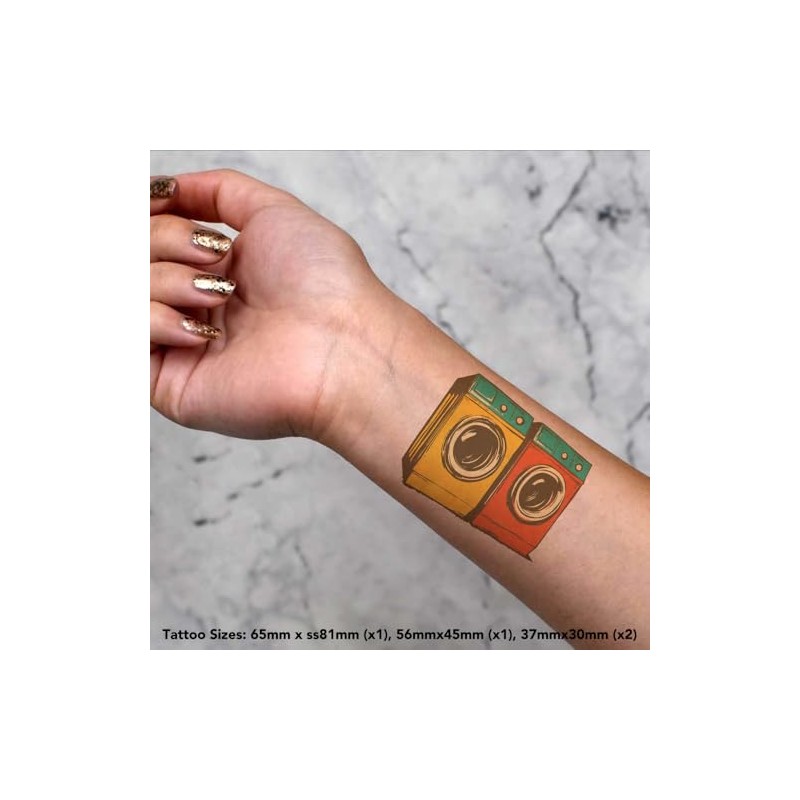 Azeeda 4 x 'Zwei Waschmaschinen' Temporäre Tattoos - Wasserfest, Hautfreundlich & Ungiftig · Transfers in Verschiedenen Größen (TO00083836)