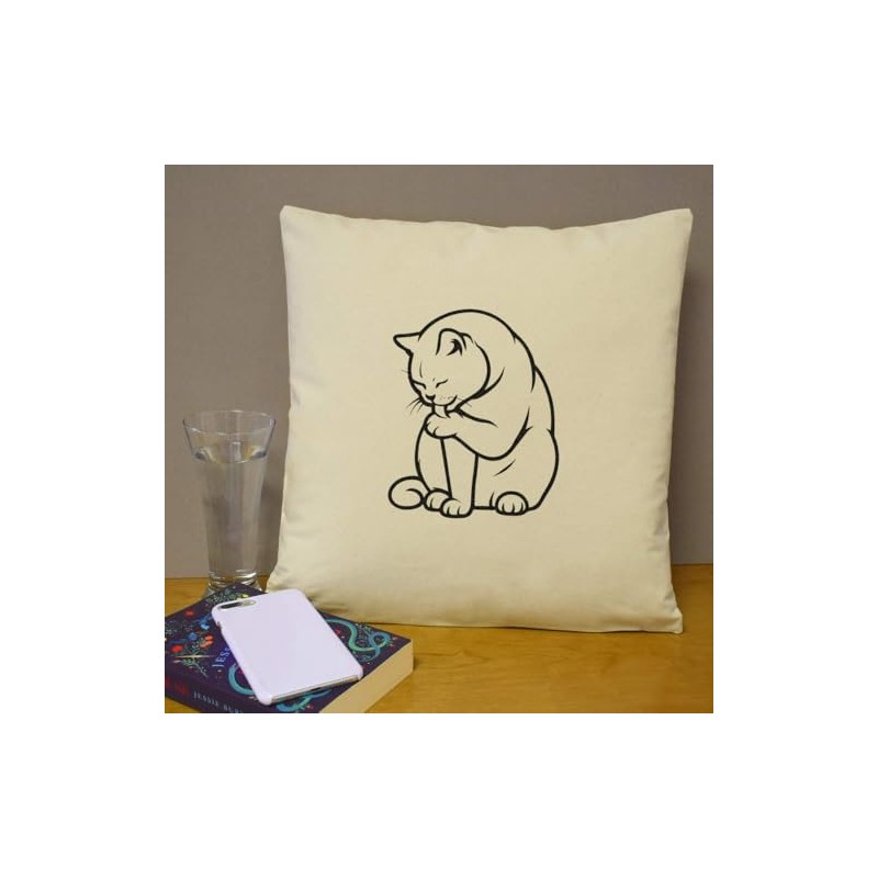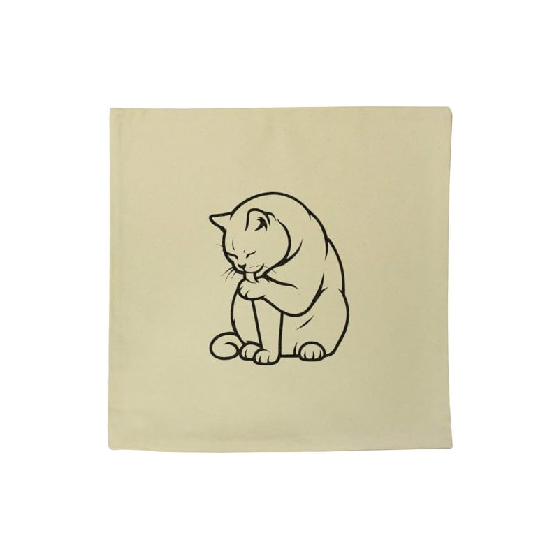 Azeeda 40cm x 40cm 'British Shorthair Cat Licking Paw' Canvas Cushion Cover (CV00045501)