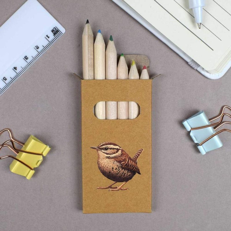 Azeeda 6 x 'Resting Wren Bird' Short 85mm Pencils/Coloured Pencil Set (PE00073036)