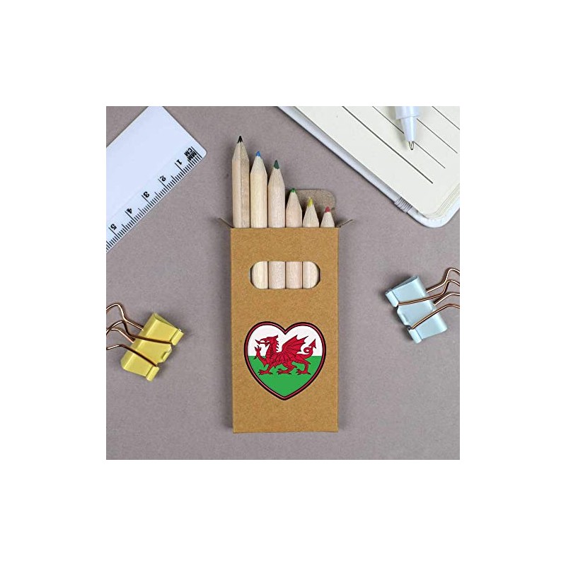 Azeeda 6 x 'Welsh Flag Heart' Short 85mm Pencils/Coloured Pencil Set (PE00051340)
