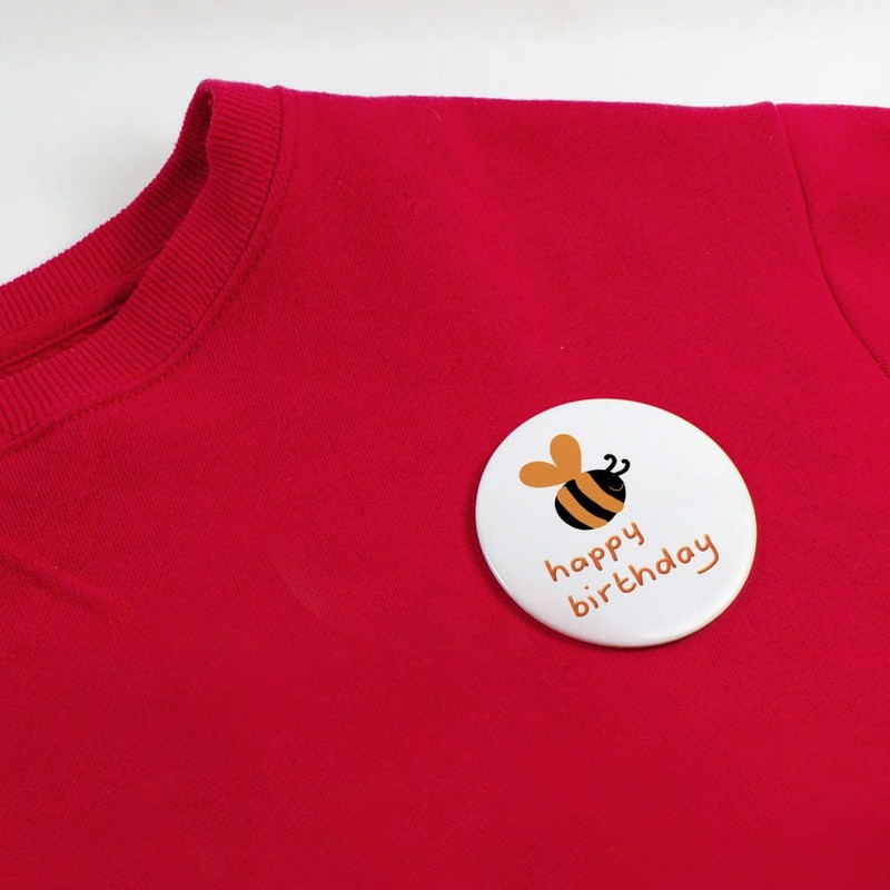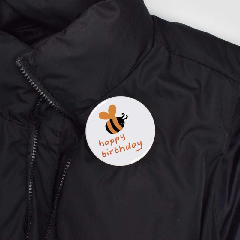 Azeeda 77mm 'Alles Gute zum Geburtstag, Biene' Pin Knopf-Abzeichen (BB00141369)