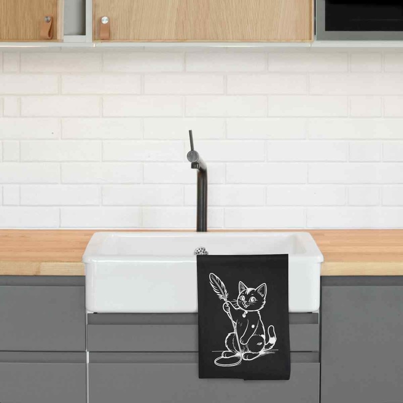 - Black cotton tea towel with hanging loop