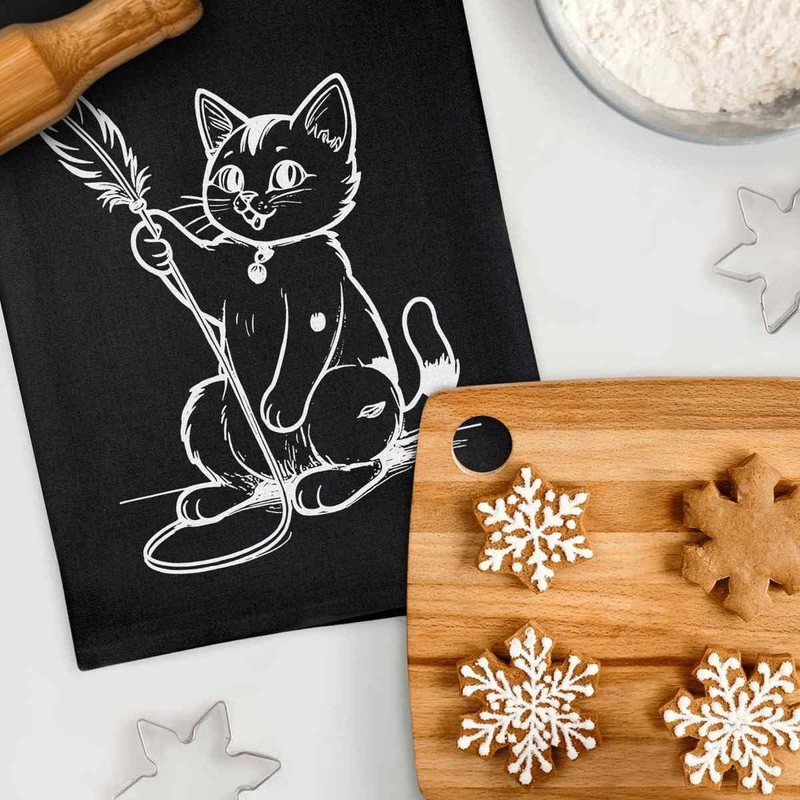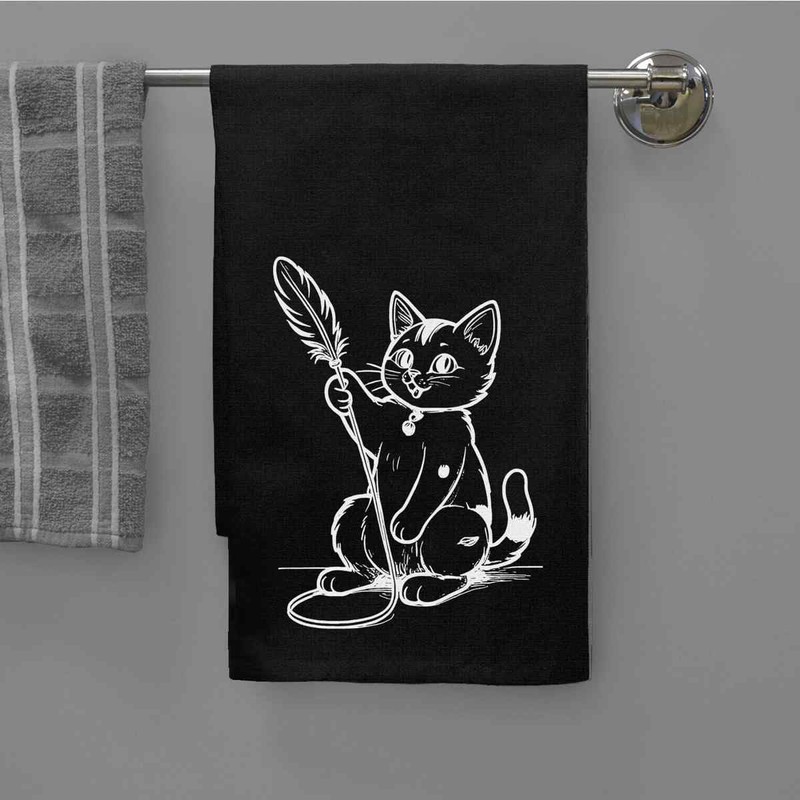 Azeeda 'Cat Playing With A Feather Toy' Black Cotton Tea Towel/Dish Cloth (TW00055647)