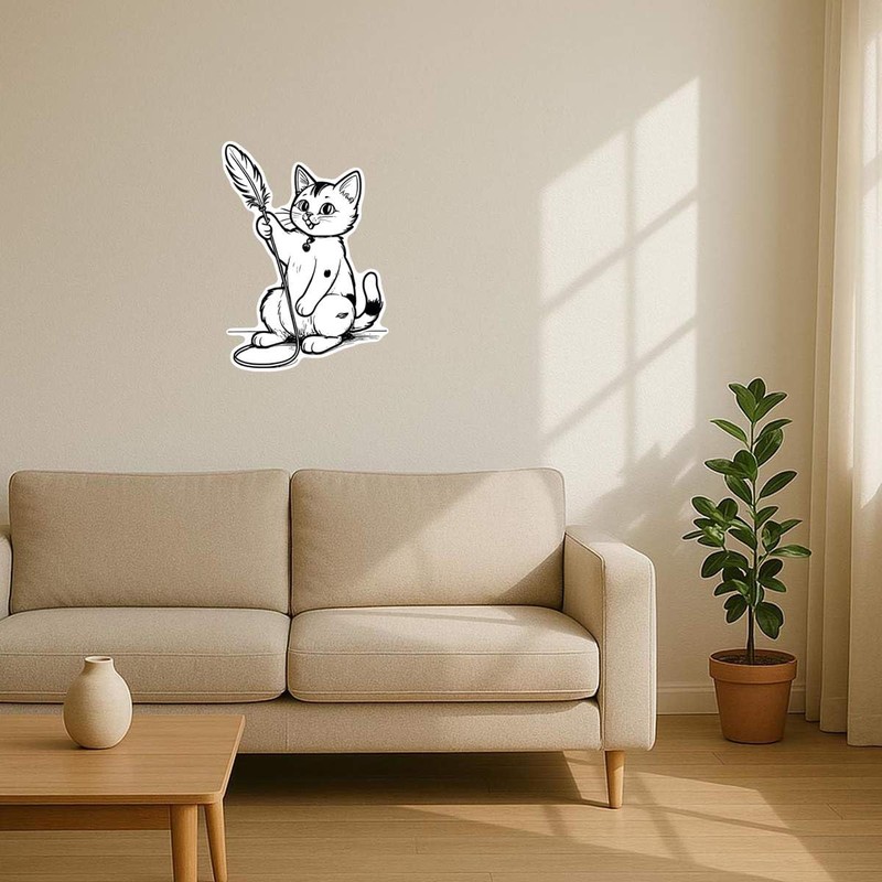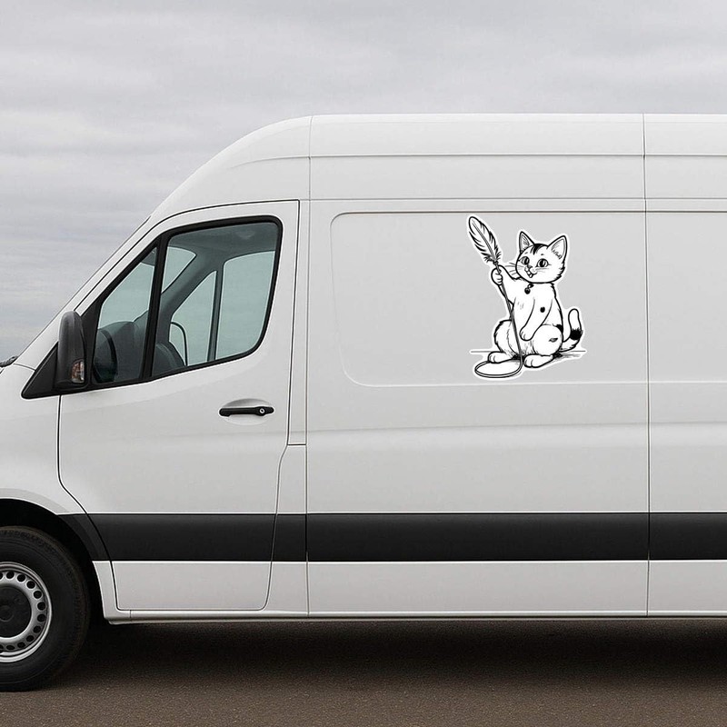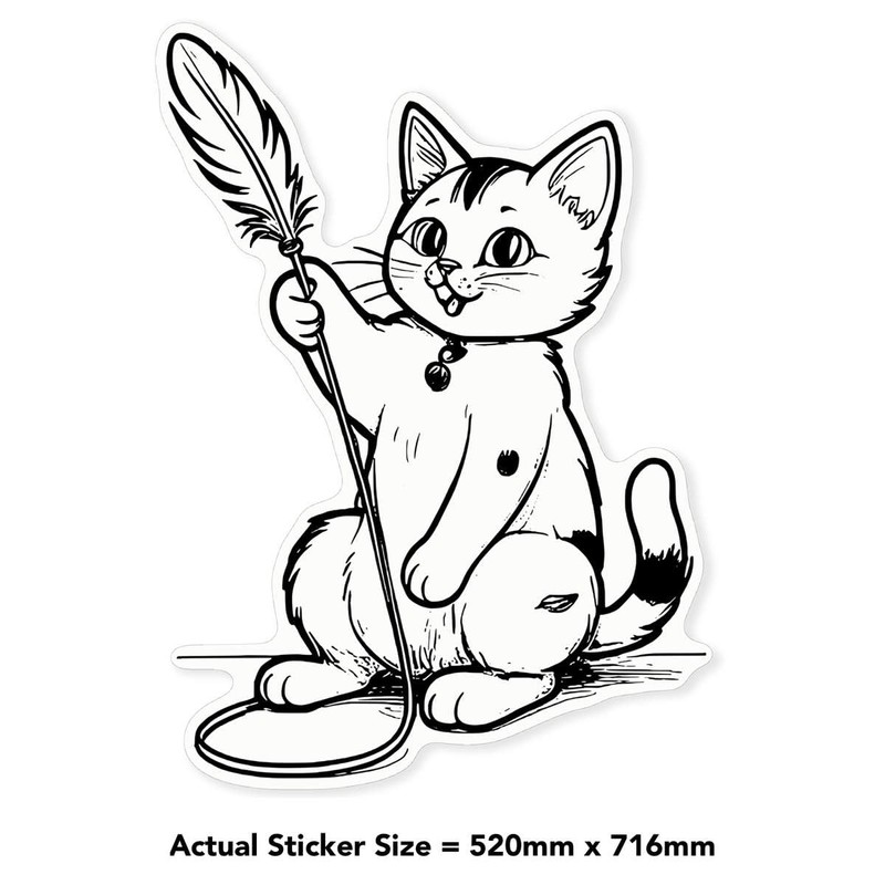 Azeeda 'Cat Playing with A Feather Toy' White Premium Vinyl Decal Sticker – Waterproof, Durable & Easy to Apply - Ideal for Car Bumpers, Windows, Bins and More (DW00165110)