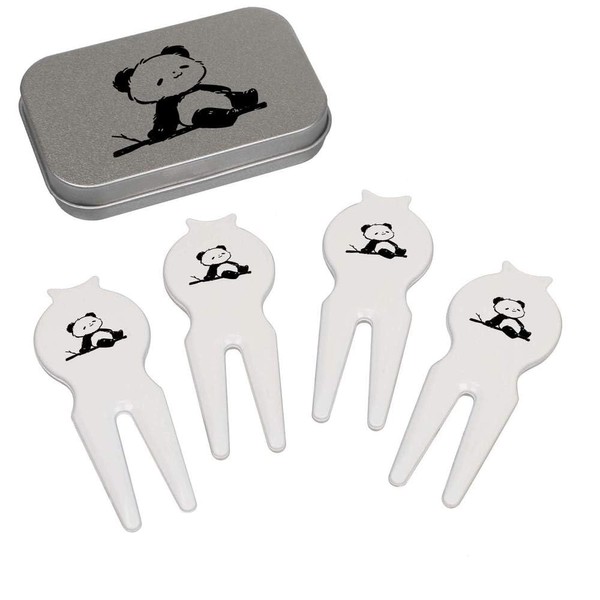 Azeeda 'Cute Panda Sitting On Branch' Golf Divot Tool/Repair Fork Gift Set (GO00070912)
