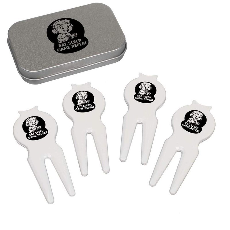 Azeeda 'Eat. Sleep. Game. Repeat.' Golf Divot Tool/Repair Fork Gift Set (GO00069064)