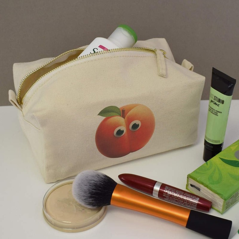 Azeeda 'Funny Peach Face' Canvas Wash Bag/Makeup Case (CS00046761)