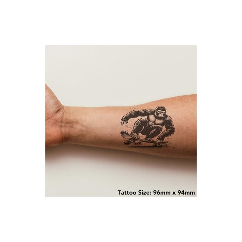 Azeeda 'Gorilla auf einem Skateboard' Temporäres Tattoo - Hautfreundlicher & Ungiftiger Abziehbild · Wasserfest (TO00070601)