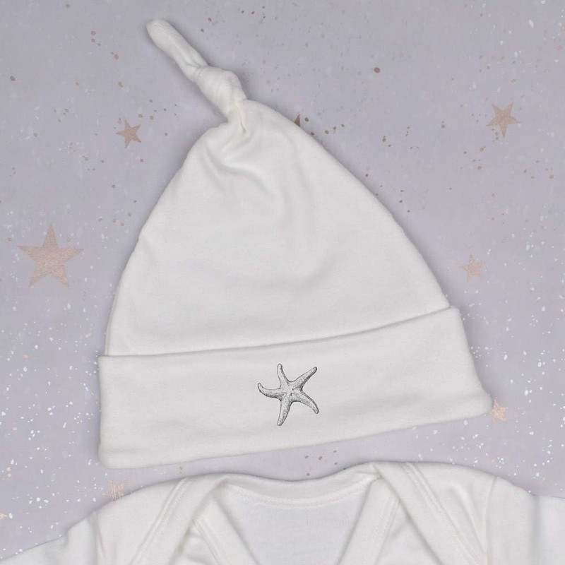 Azeeda 'Single Starfish' Baby Beanie Hat (BH00035012) White