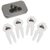 This set contains 1 tin of 4 matching plastic divot tools