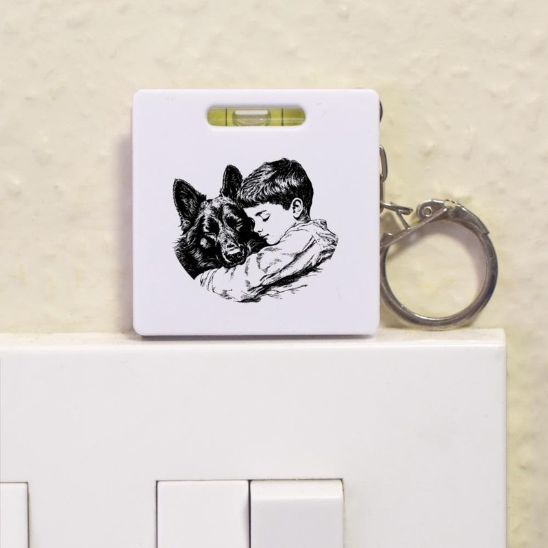 Azeeda 'Sleeping Boy with German Shepherd' Keyring Tape Measure/Spirit Level Tool (KM00042662)