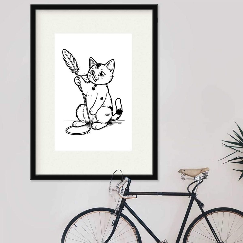 Azeeda Super A1 'Cat Playing With A Feather Toy' Wall Poster/Print (PP00266548)