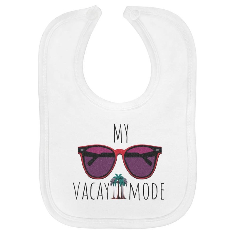 Azeeda 'Vacation Mode With Sunglasses And Palms' Soft Cotton Baby Bib (BI00058940)