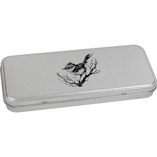 Azeeda 'Wren Bird on Branch' Metal Hinged Stationery Tin/Storage Box (TT00246091)
