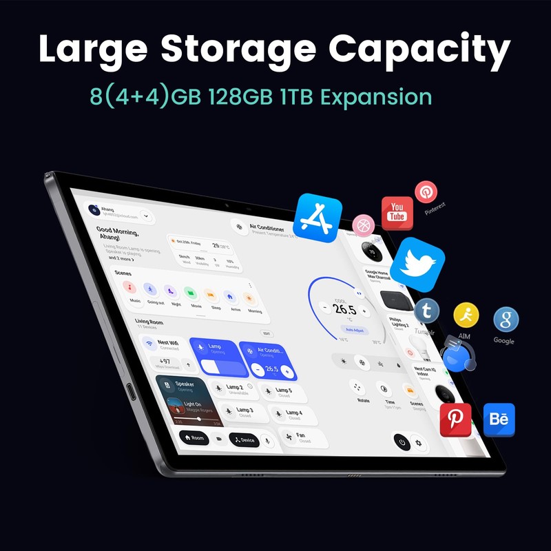 - 8GB RAM+128GB ROM & Octa CoreAzeyou Tab6 WIFI 10 inch tablet with Latest Android 14 and features an Octa-Core CPU processor paired with 8GB RAM (4GB RAM and 4GB extended virtual memory) and 128GB ROM. This allows you to quickly switch between apps and play games without lag. You can also expand the storage space via MicroSD up to 1TB to store your favorite e-books, videos, movies and apps.