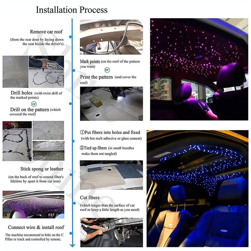 - 【Sound Actived】:The 6W fiber optic lights engine with SOUND MODE, and the fiber optic strands dancing with the rhythm of music or Ambient sound,making it more romantic and unique with beat in car especially