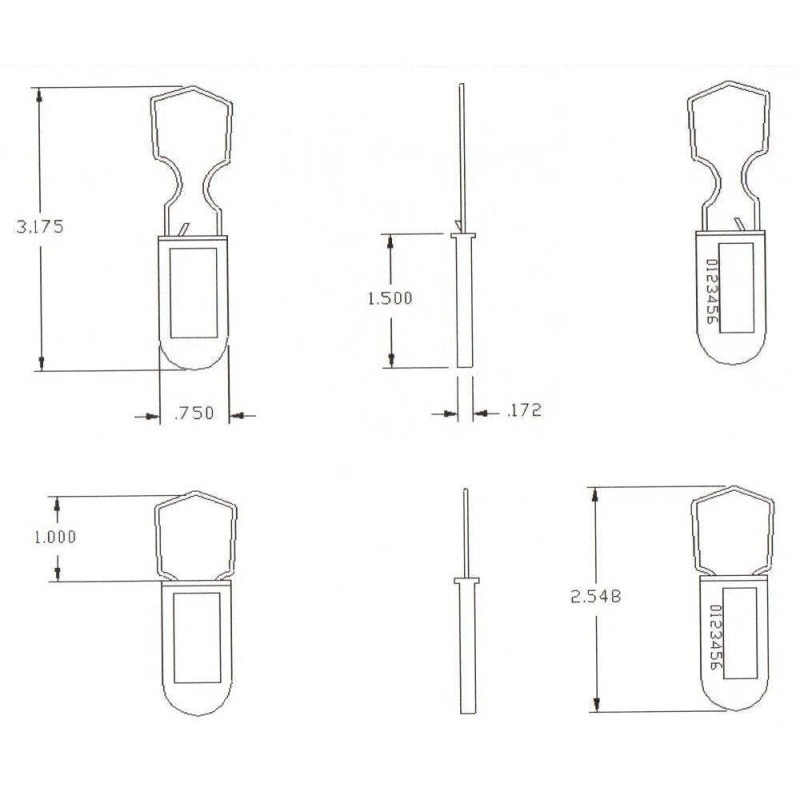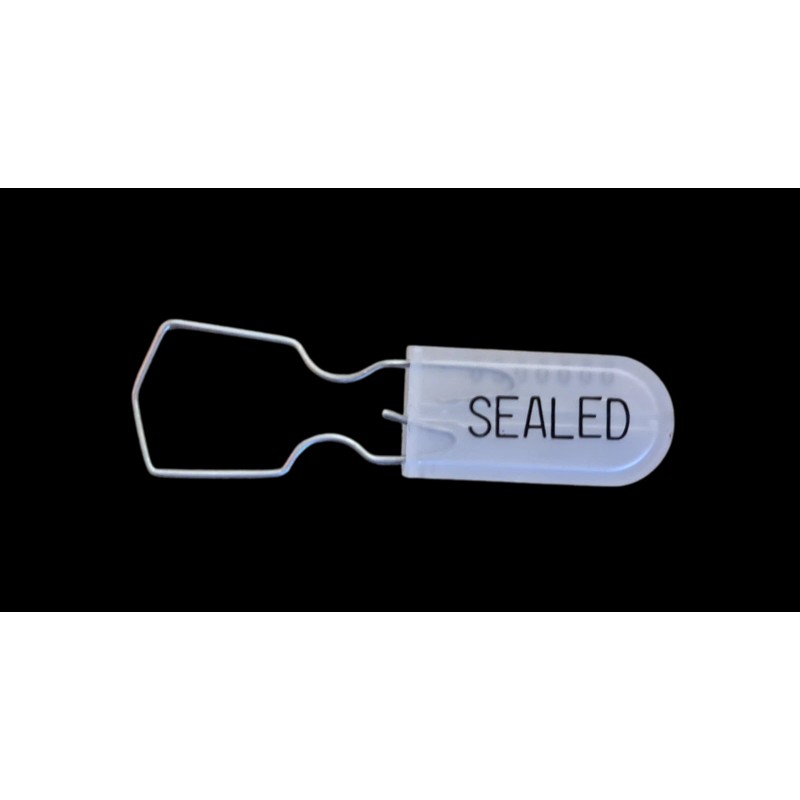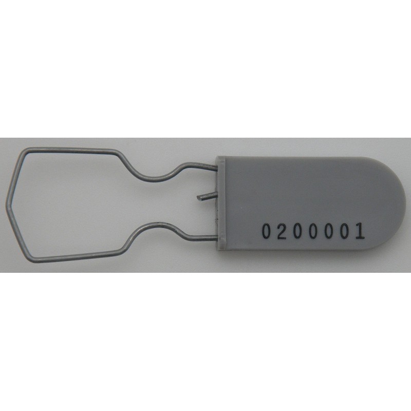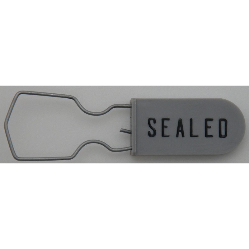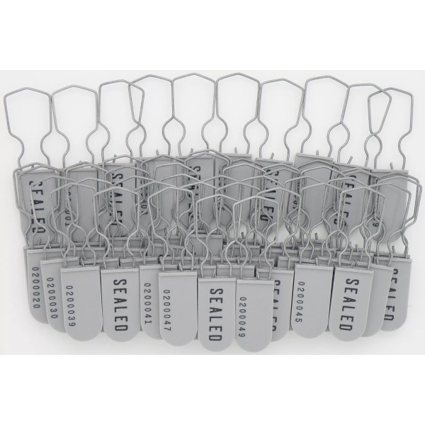 Weather Resistant, Plastic Seal with a Galvanized Steel Shackle. Grey Color With Black Imprint. Seven-Digit Serial Number. Sequential order. Used Where Security and Tamper Indication is Needed / Critical. Higher-Security Seal. Each padlock security seal is a "one use" seal which snaps (locks) into place and is non-removable without leaving a clear indication of tampering. NO SPECIAL TOOL is required to attach these seals - simply clip around the object to be secured and compress the seal by hand. These seals are NON-SCORED meaning the seal must be cut off -or- forcefully twisted off. Each large-shackle, industrial-grade, gray padlock seal is heat and paint embossed with "SEALED" on one side, and a Seven-digit serial number on the other side.Each seal measures as follows: Body size: .75" X 1.50" X .17", Wire dimensions: .047", 18 AWG Breaking strength: 100 lbs. Full length including wire 2.548" when locked, making these seals both rugged and light-weight. These seals were manufactured in the United States. There are hundreds of uses for these padlock seals...
