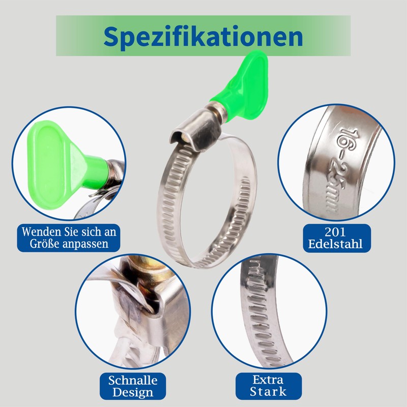 - Versatile: you can use the hose clamps 5 x 50-70 mm, 5x 32-50 mm, 5x 25-40 mm, 5 x 16-25 mm and 5 x 10-16 mm, which can be easily screwed by hand.