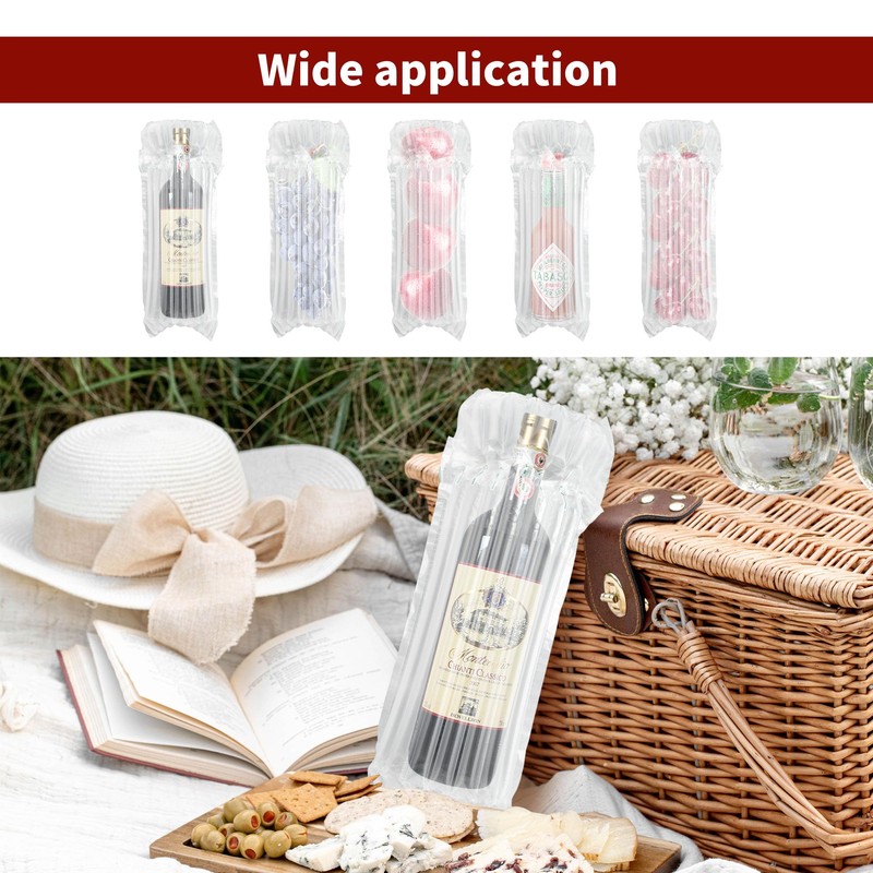 - Easy to use: on the side of the air column bag, the edge of the bag has a filling port and arrow inflation tips, finds the ventilation port, and then uses the pump to inflate from the air inlet. The wine bottle protector bags can be packed by placing them on approx. 80% inflation, it takes about 15 seconds to fully inflate. Note: Hold the inflatable port firmly when inflating to prevent air leakage.