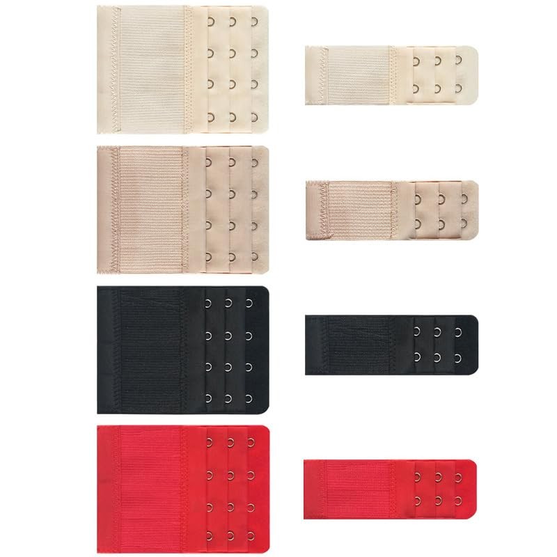 - 【Bra Extender】This set contains 8 high quality bra extenders in black, skin color, apricot and red - 2 pieces of each color. The two sizes included (4 rows 4 hooks 3 rows 3 hooks) fit many bra models and offer maximum flexibility.