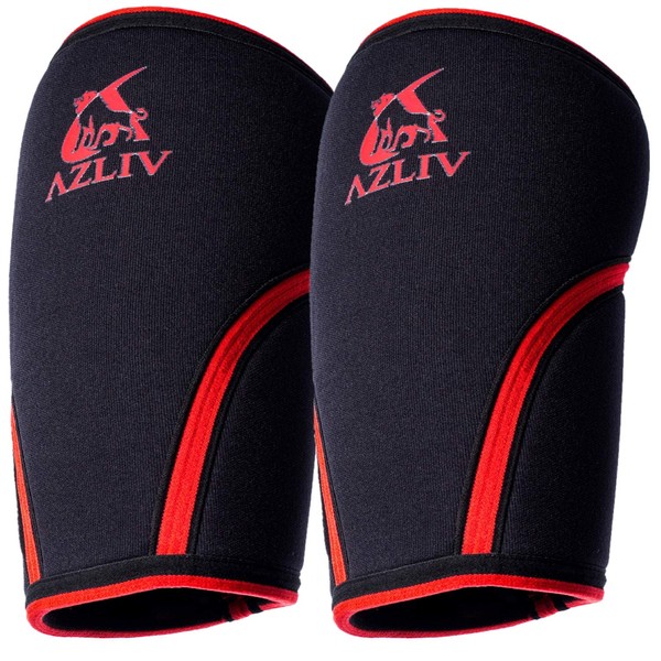 AZLIV (アズリブ) ニースリーブ 7mm ニーサポーター 膝サポーター 筋トレ 筋力トレーニング スクワット ウエイトトレーニング ジム (赤, S)