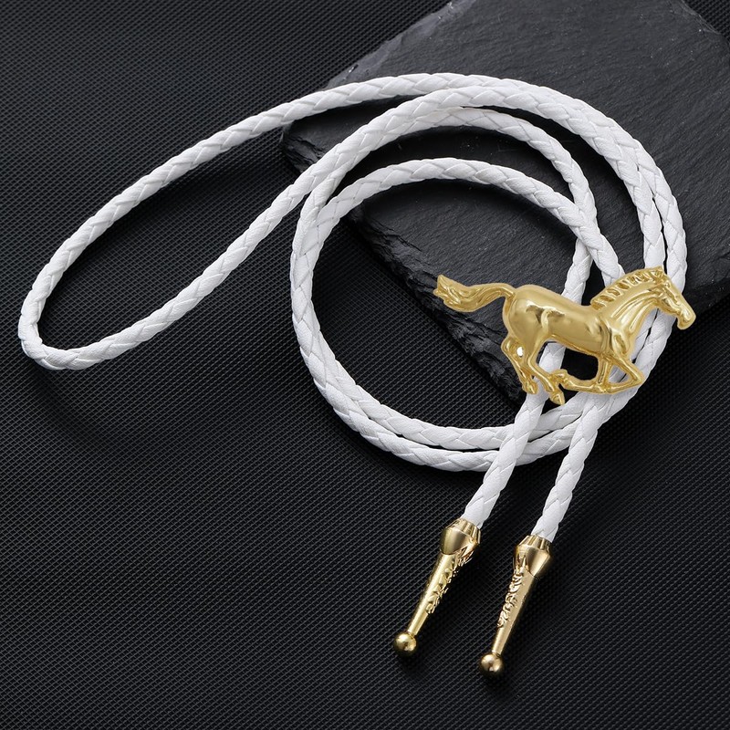 AZORA Western Cowboy Bolo Tie for Men Native American Bola Necktie Rodeo Leather Necktie for Men Women, Golden Horse Bolo Tie-white, adjuatable