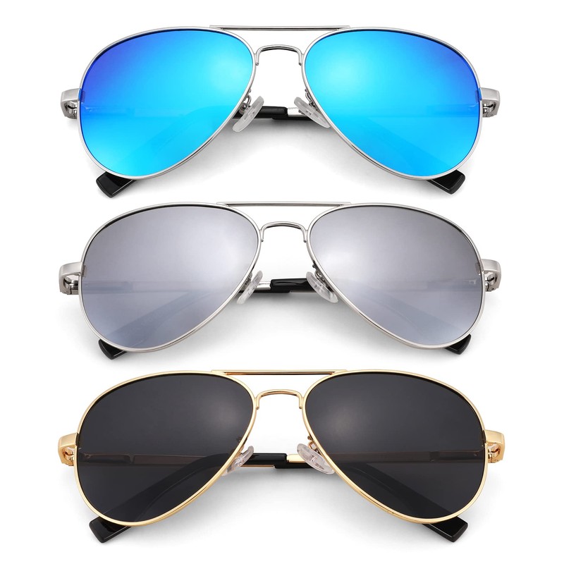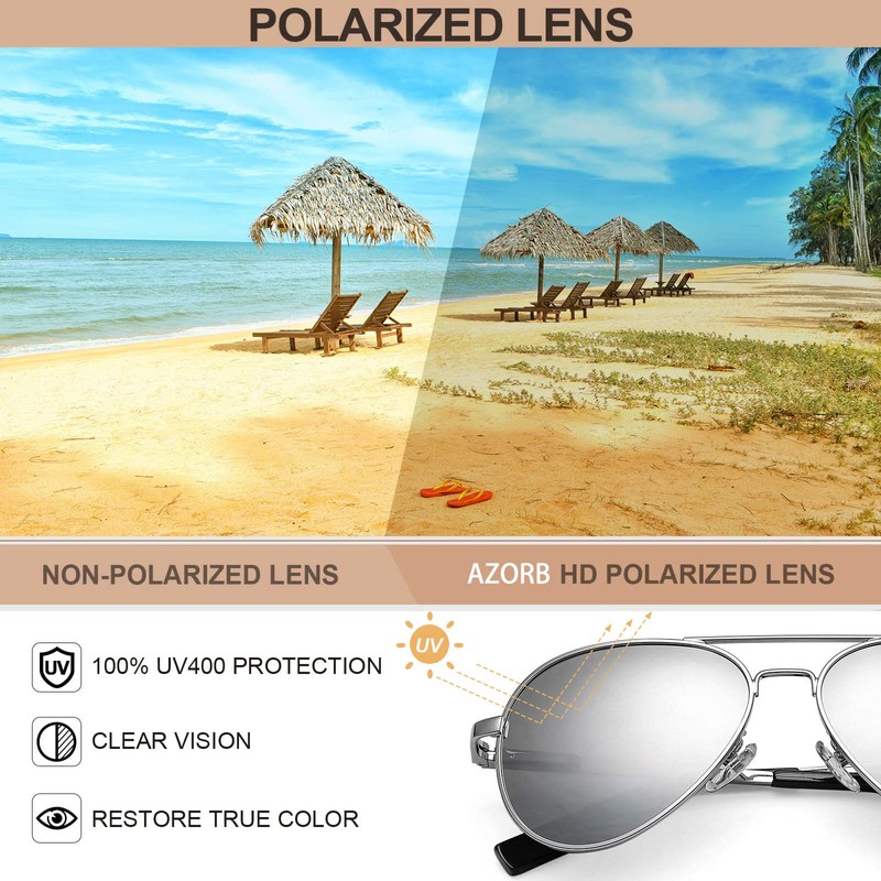 AZorb Polarized Aviator Sunglasses for Men Women Metal Frame Retro Shades UV400 Lens Protection Driving Sun Glasses - 3 Pair