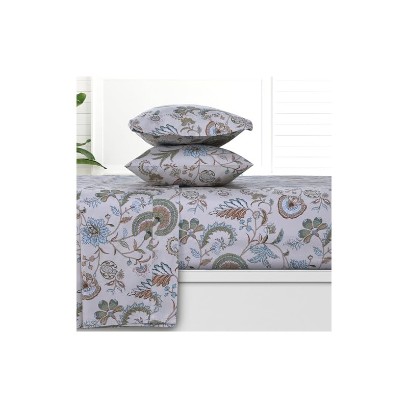 • 100% Organic Cotton with 300 Thread Count: Crafted from 100% certified organic cotton, these sheets feature a 300 thread count that ensures a smooth and fine texture. The organic cotton is soft to the touch, breathable, and perfect for a restful night's sleep.