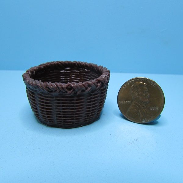 Aztec Dollhouse Miniature Resin Weaved Large Round Basket in Brown B3248